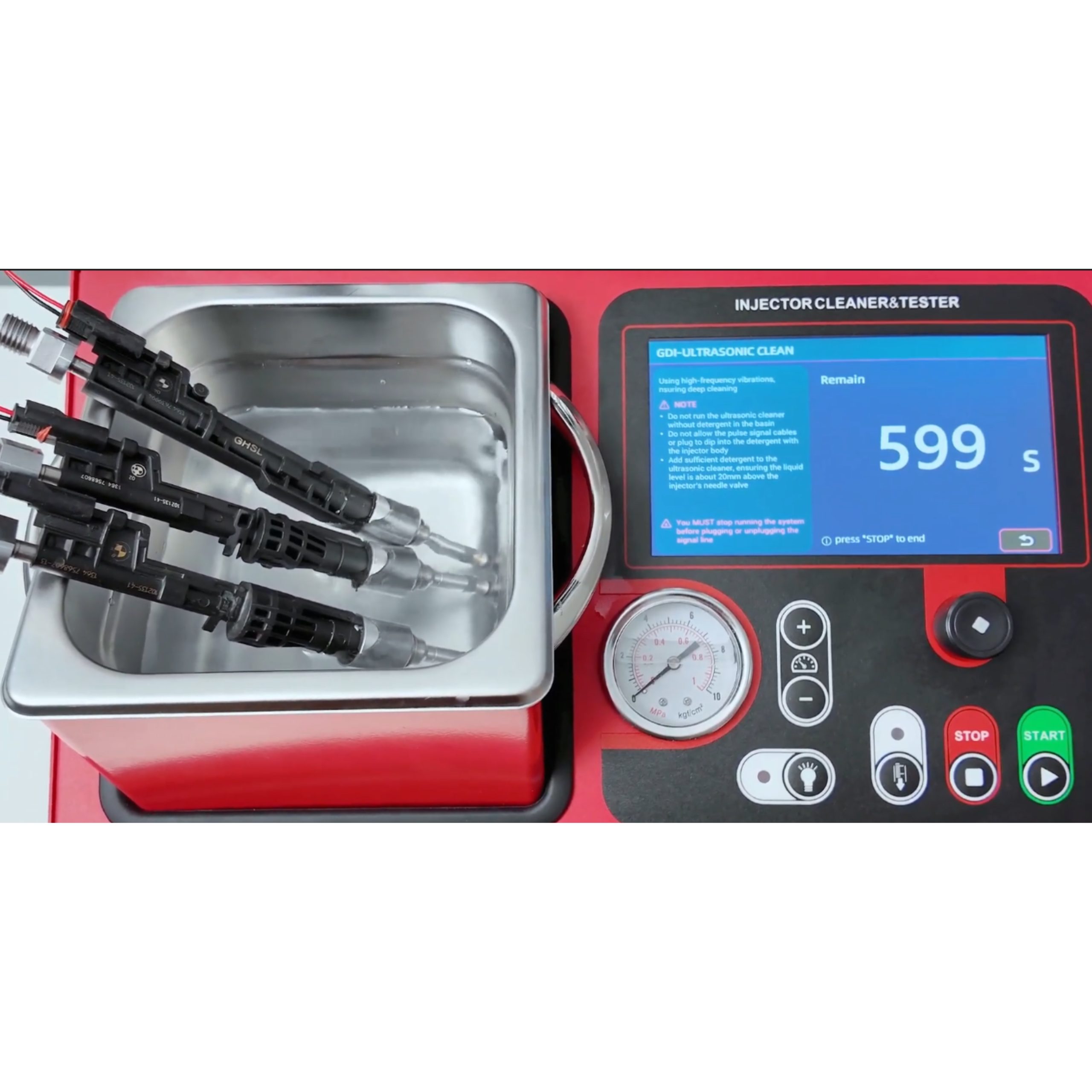 La CNC605+ es una avanzada máquina multifuncional diseñada para la limpieza y comprobación de inyectores de gasolina de última generación. Compatible con inyectores GDI, Piezoeléctricos y convencionales, este equipo es ideal para talleres que trabajan con vehículos modernos que requieren un diagnóstico y mantenimiento de alta precisión en sus sistemas de inyección directa o convencional.
