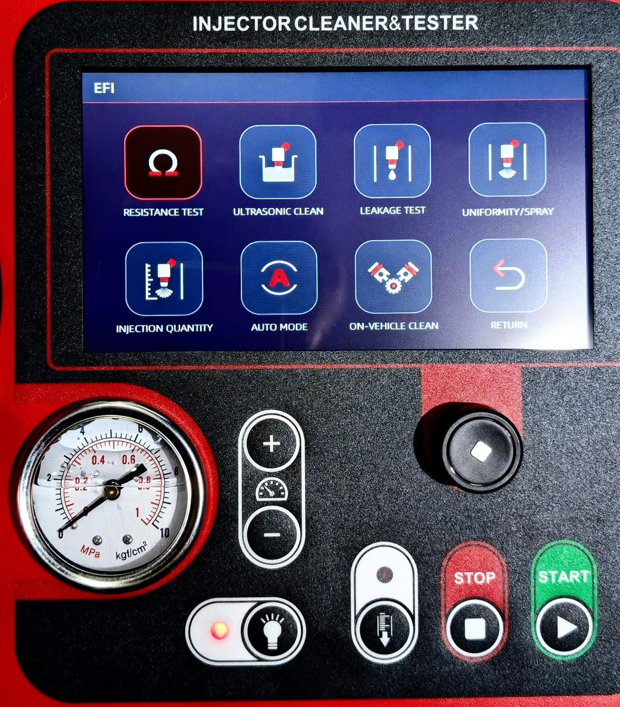 Función de limpieza y prueba automática Bajo parámetros de trabajo específicos, simula de manera realista la prueba del inyector en diversas condiciones.